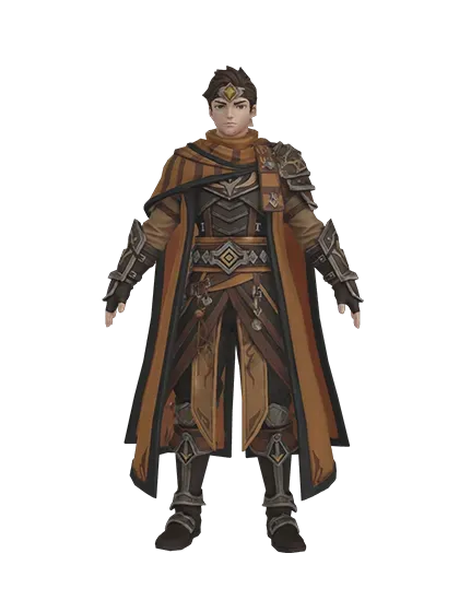 - Apply this separation technique for every layer visible in the reference image: - Character underwear layer - Shirt garment meshes - Outer jacket models - Equipment accessories including belts, jewelry items, and equipment holsters for anime RPG weapons